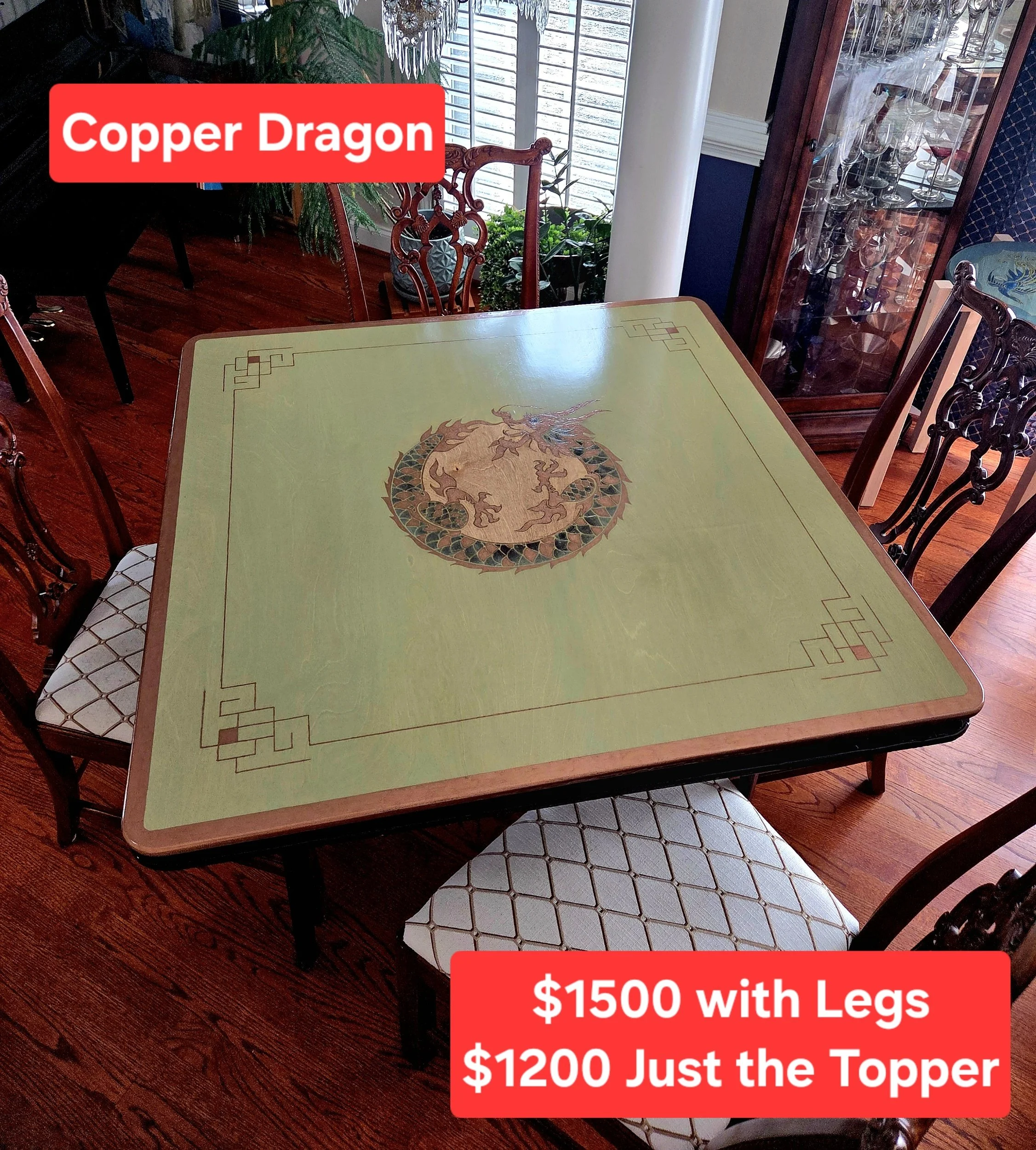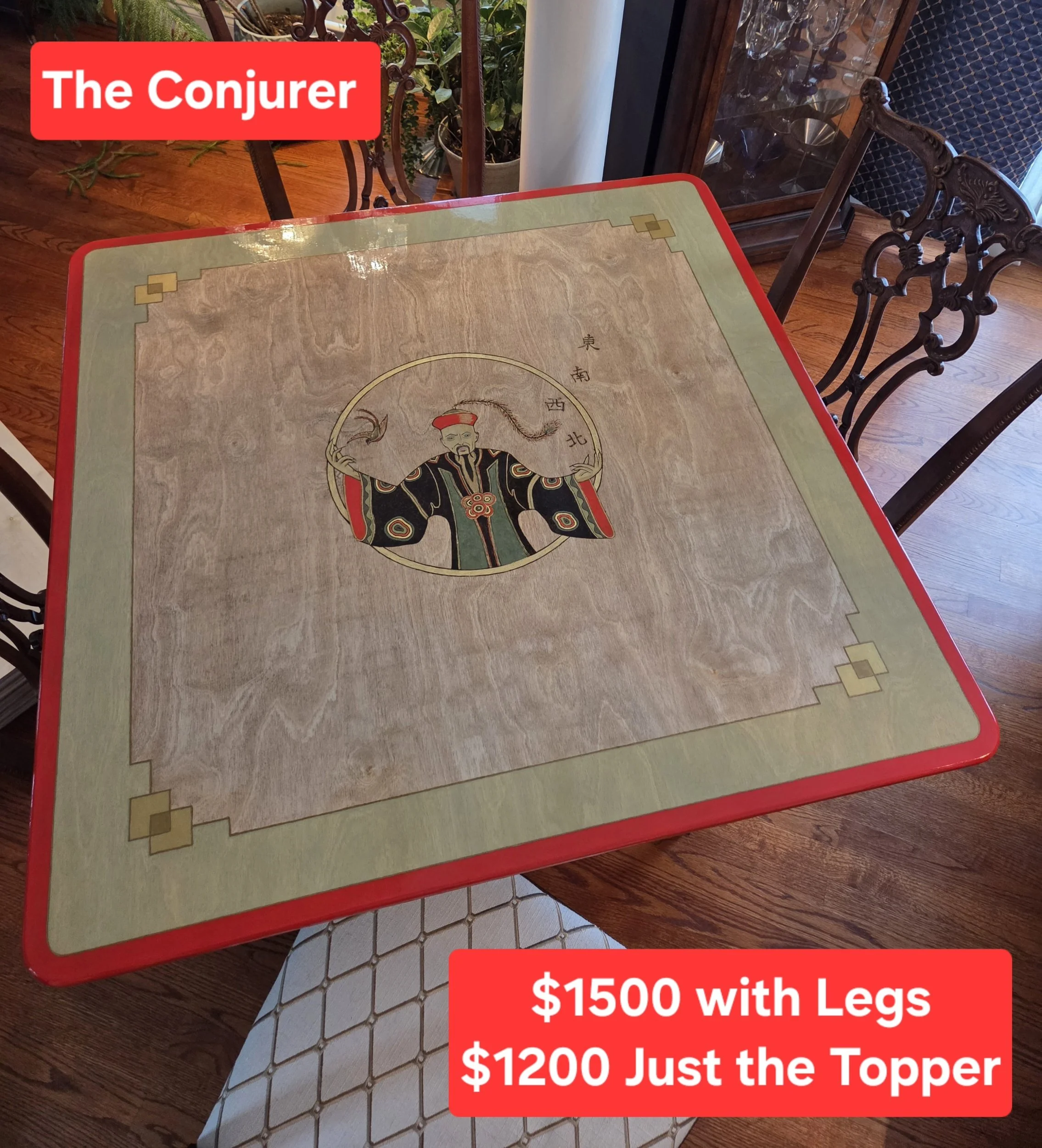 Tables can be made to order with custom colors, themes, and matching/coordinating designs to fit in perfectly with your decor or favorite mahjong accessories. We even have a line of 15” 1 Bam Bird side tables in the works!